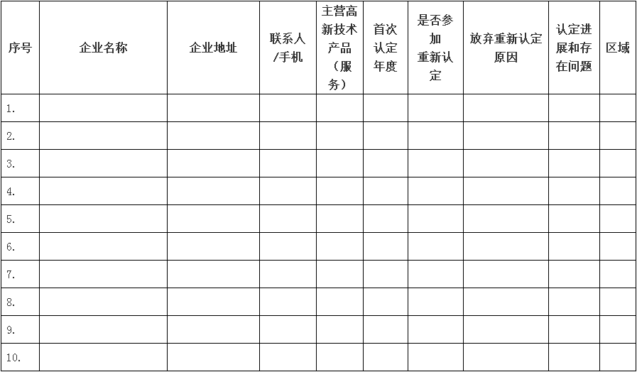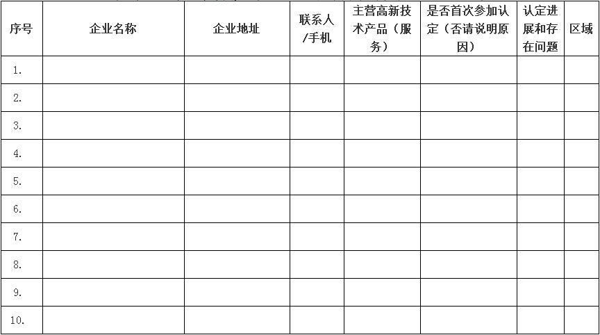 請各縣(市、區(qū))科技局和開發(fā)主體科技主管部門盡早謀劃、精心組織、狠抓落實(shí)、確保實(shí)效,并從1月開始,于每月15日、30日前填報(bào)《金華市新申報(bào)國家高新技術(shù)企業(yè)清單》(見附件1)報(bào)市科技局工業(yè)與高新技術(shù)處備案。