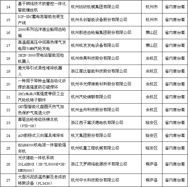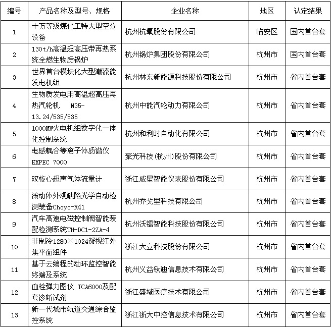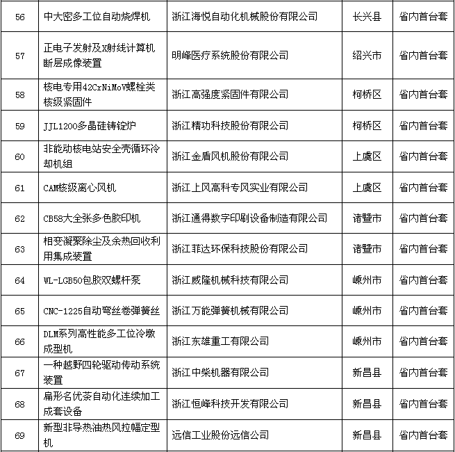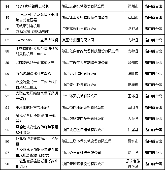 2018年度浙江省裝備制造業(yè)重點領(lǐng)域首臺(套)產(chǎn)品認(rèn)定結(jié)果公示名單