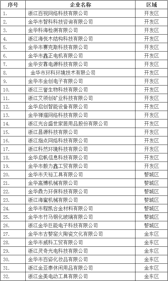 2018年浙江省高成長(zhǎng)科技型中小企業(yè)推薦匯總表