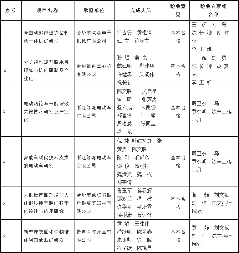 金華市級科技計劃項目驗收結果公示清單