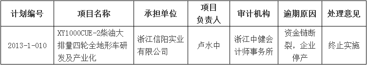 根據(jù)《金華市級(jí)科技計(jì)劃項(xiàng)目驗(yàn)收管理辦法》(金市科字〔2015〕83號(hào))相關(guān)規(guī)定,經(jīng)研究,我局?jǐn)M對(duì)浙江信陽實(shí)業(yè)有限公司承擔(dān)的市級(jí)科技計(jì)劃項(xiàng)目“XY1000CUE-2柴油大排量四輪全地形車研發(fā)及產(chǎn)業(yè)化”(計(jì)劃編號(hào):2013-1-010)進(jìn)行終止處理,對(duì)項(xiàng)目負(fù)責(zé)人和主要股東記錄不良科研信用?,F(xiàn)予以公示,自公示之日起5個(gè)工作日內(nèi),有關(guān)單位或個(gè)人如有異議,應(yīng)當(dāng)以實(shí)名與我局聯(lián)系。聯(lián)系方式:金華市科技局工業(yè)與高新技術(shù)處,電話:82469791;市紀(jì)委駐市科技局紀(jì)檢監(jiān)察組,電話:82387952。