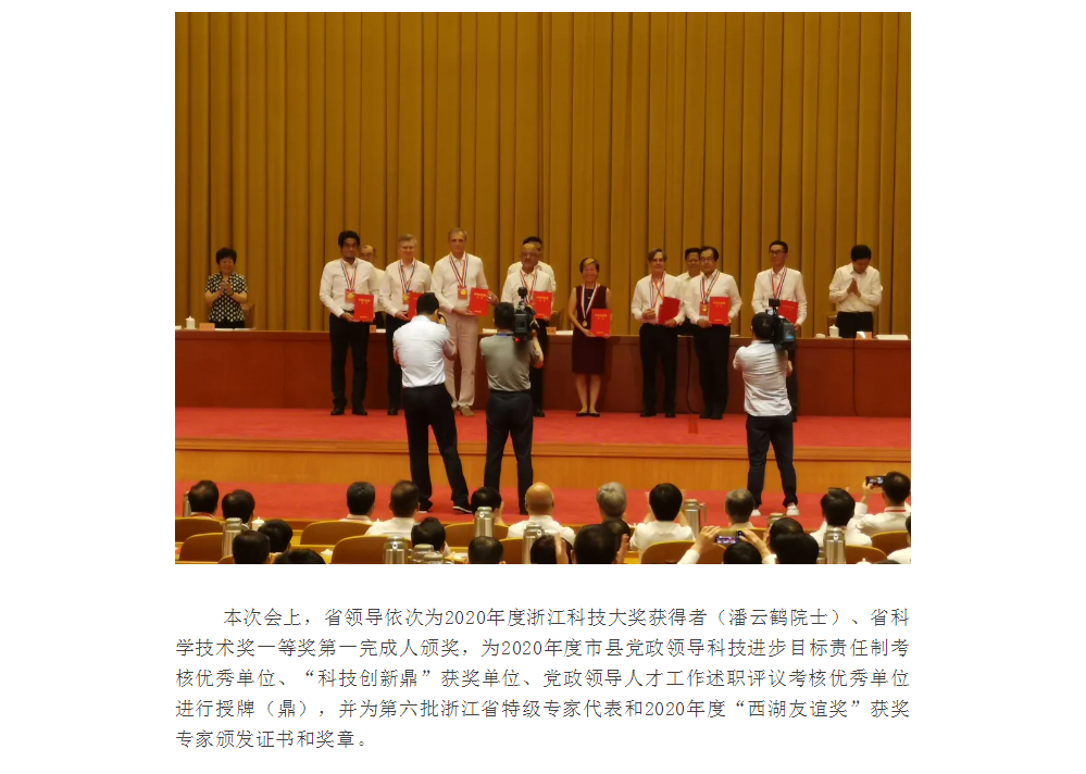 浙江大維高新技術股份有限公司的約瑟夫·斯發(fā)基斯,浙江師范大學的莫洽林·葉夫根、雅羅斯拉夫·內(nèi)塞利爾3位外國專家獲得2020年“西湖友誼獎”。